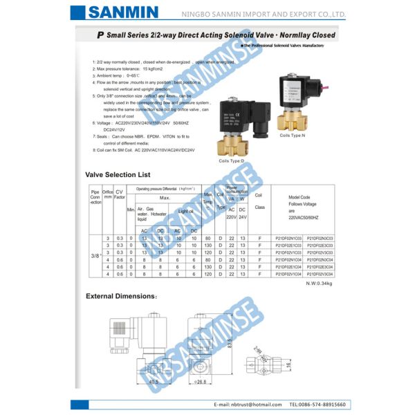 2. Nominal pressure solenoid valve of the highest calibration must be more than the highest pressure in the pipeline , otherwise life will shorten or other unexpected circumstances .