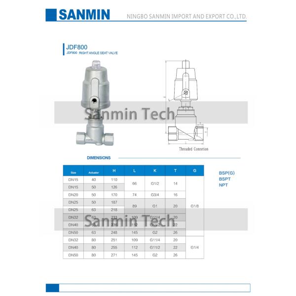 JDF800 Pneumatic Angle Seat Valve Right Stainless Steel Angle Valve Images |